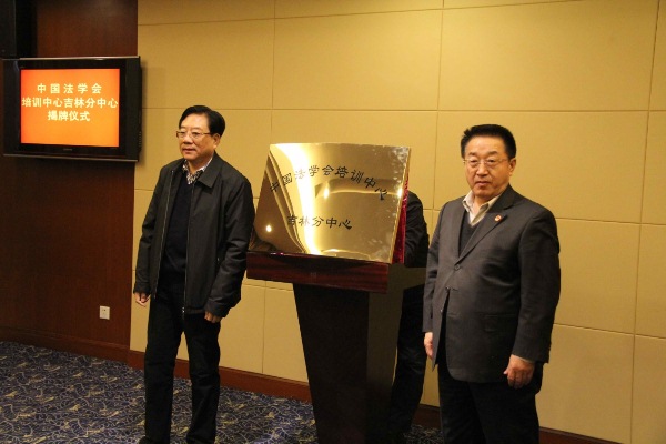 中国法学会副会长张鸣起、吉林省法学会会长李申学为中国法学会培训中心吉林分中心揭牌